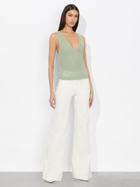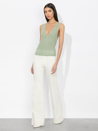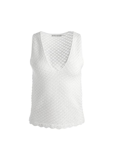 Easygoing yet effortlessly chic, our Annalise Tank is an essential. Made from a cashmere-linen blend woven into an open pointelle stitch, it offers a breezy, textured feel that’s both relaxed and refined. The delicate scalloped hem adds a touch of femininity, while the fitted silhouette makes it perfect for layering or wearing solo. Pair it with denim for a laidback look or style it with a flowy skirt for effortless elegance. DETAILS - Knit tank - Pointelle stitch - 49% linen, 48% lyocell, 3% cashmere - Dry clean only - Imported FIT - Model is 5'10" and wearing a size XS - Length from the shoulder: 21" - Fits true to size, take your normal size