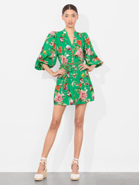 Feminine florals are what spring is made for - and bare legs! This mini is the best of both worlds. It’s made from a breathable printed viscose and constructed into an effortless shirtdress silhouette. Super girly and feminine, she's the perfect piece to throw-on-and-go when the sun comes out. DETAILS - Mini shirt dress - Button front - Puffed shoulders - Blouson sleeves - Adjustable braided tie waist - Printed double viscose - 100% viscose - Dry clean only - Imported FIT - Model is 5"10" and wearing a size 2 - Length from the shoulder: 33 1/2" - Fits true to size, take your normal size