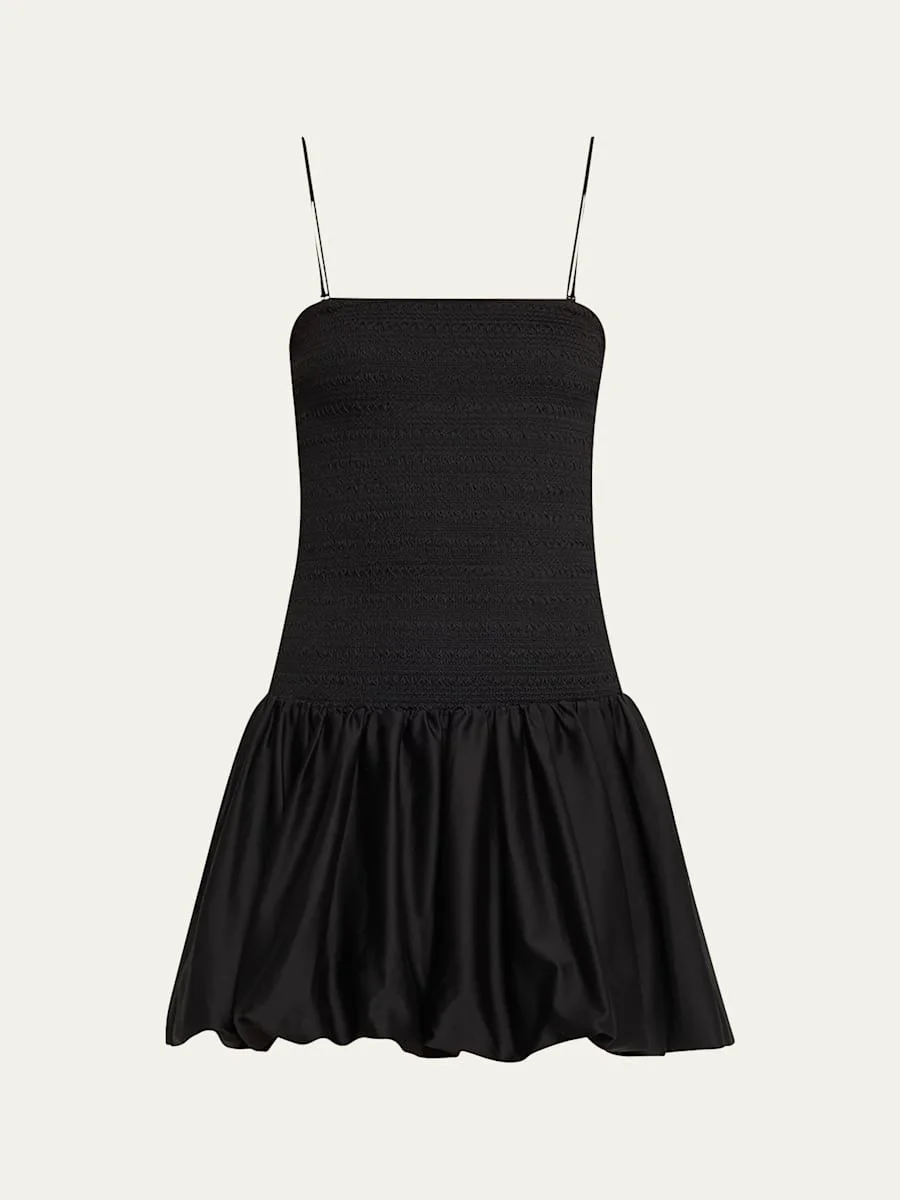 Alice + Olivia "Arden" dress consists of a delicately-smocked bodice and a voluminous bubble skirt Square neckline Detachable spaghetti straps Hem falls above the knee Drop waist Center back zipper Polyester Lining: Recycled polyester/elastane Imported Online Inquiries: BGS21_T6S5J| Store Inquiries: #5029043