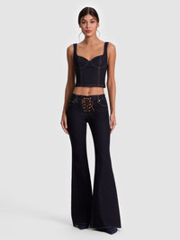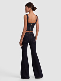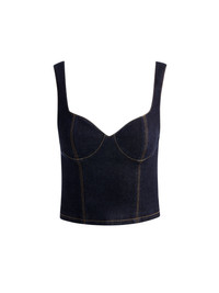 Our take on the denim bustier--structured, sculpting, and perfect-fitting. Ava’s sweetheart neckline adds a feminine edge, while the smocked back keeps it flexible and flattering. Pair it with the matching jean for a modern Canadian tuxedo moment. DETAILS - Denim bustier - Sweetheart neckline - Cropped - Smocked back with zipper closure - 94% cotton, 5% elastomultiester, 1% elastane - Dry clean only - Imported FIT - Model is 5'10" and wearing a size 0 - Length from the shoulder: 18" - Fits true to size, take your normal size