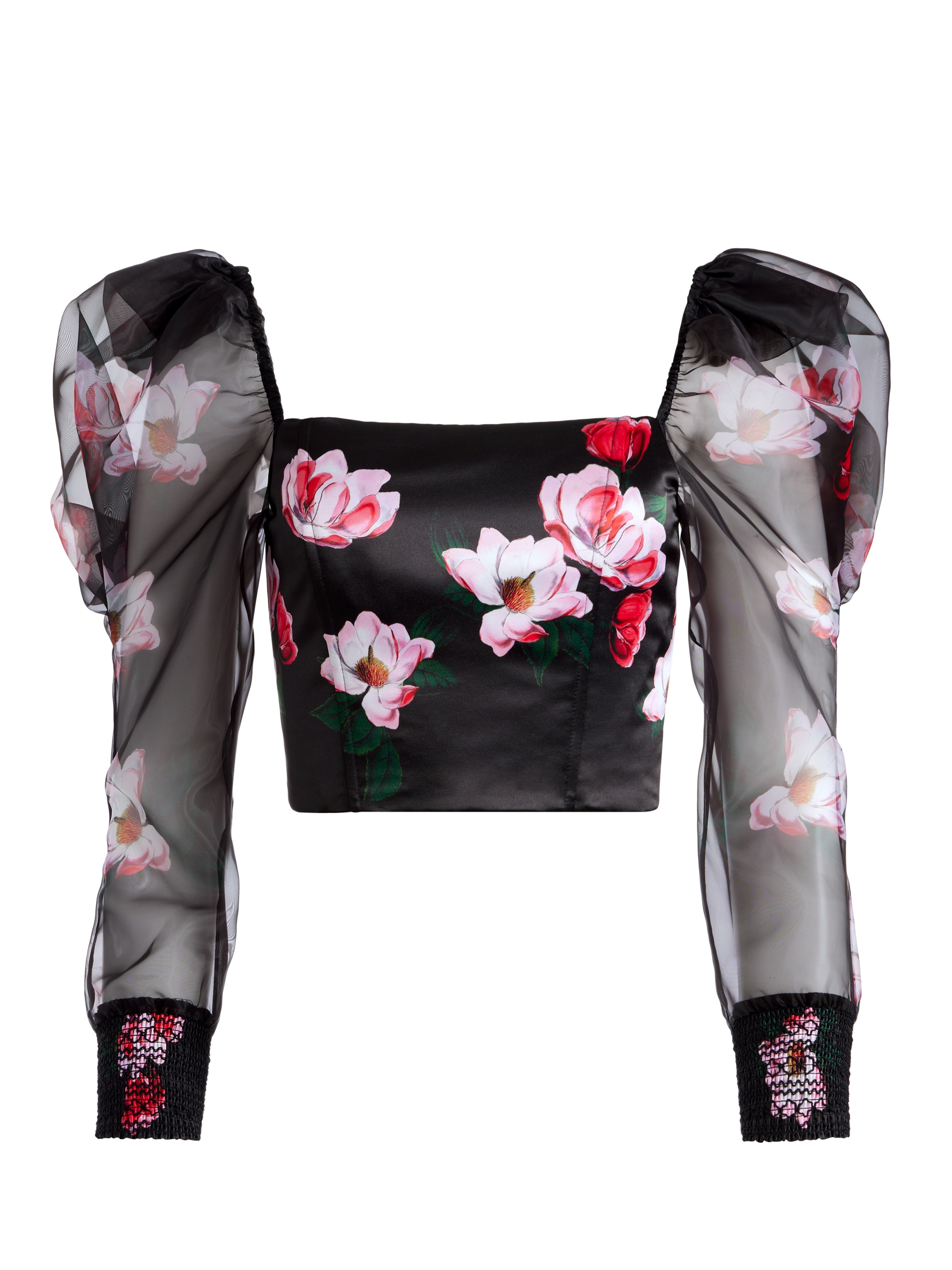 A gorgeous crop top with a bustier-style construction? Oh, yes, we made your dream top. This one features a square neckline, square back and sheer ruffled sleeves. PRODUCT DETAILS - Crop top - Bustier - Square neck - Square back - Sheer ruffled sleeves - Smocked back - Back zipper closure - Total length: 7” - 100% polyester - Fits true to size, take your normal size - Aqua is wearing a size 2 and her measurements are 5’10”, 32” bust, 23” waist, 34” hips - Dry clean only - Imported