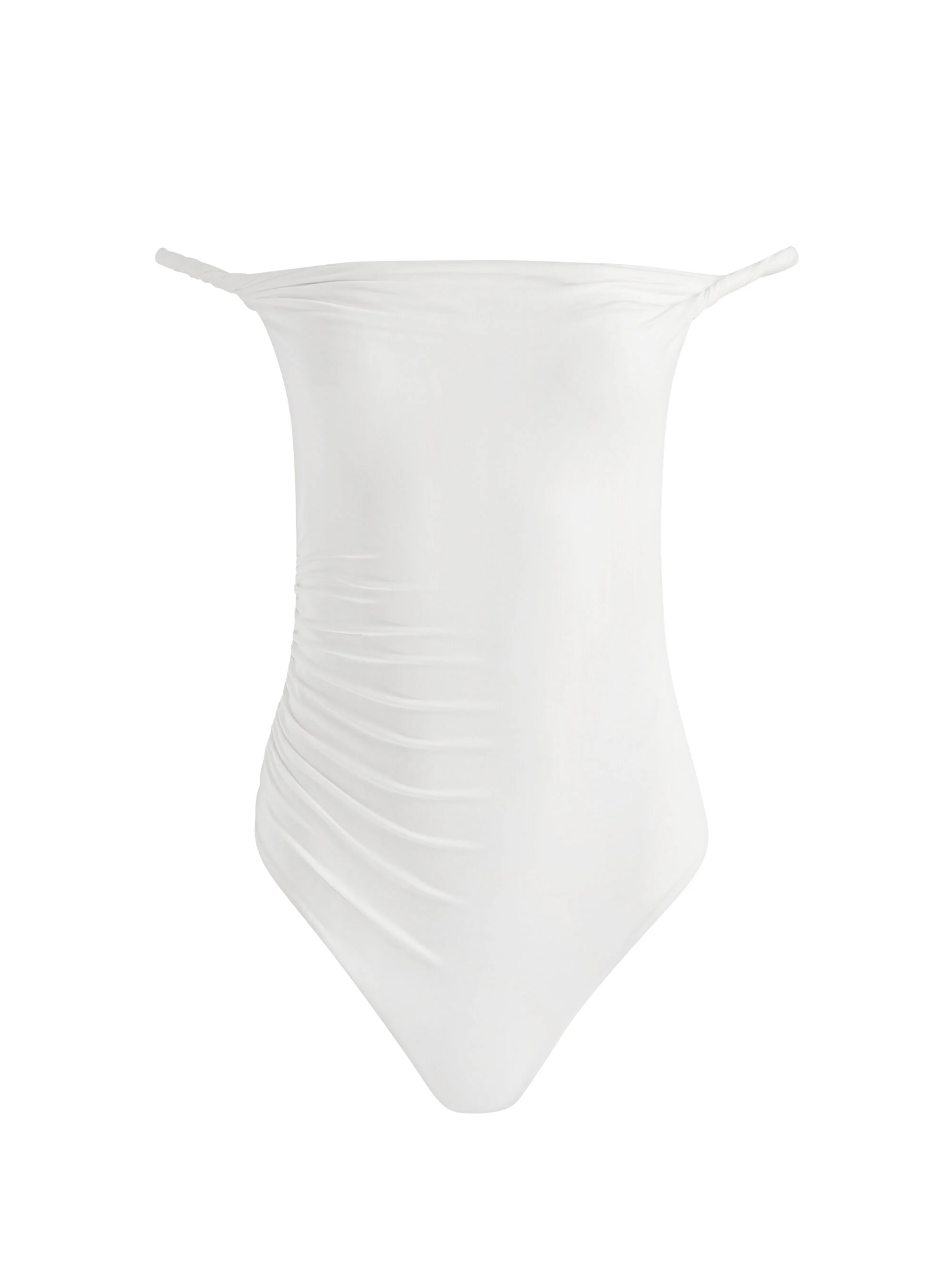 The definition of date-night drama. Bianca is crafted from a soft, stretchy jersey and features a twisted off-shoulder neckline, a sleek thong back, and a zipper closure for a smooth, seamless fit. Pair it with denim or a high-waisted mini-this one was made for turning heads. DETAILS - Bodysuit - Soft viscose jersey blend - Twisted off the shoulder neckline - Thong back with snap closure - Back zipper closure - 59% viscose, 36% nylon, 5% elastane - Dry clean only - Imported FIT - Model is 5'10" and wearing a size XS - Length from the shoulder: 26" - Fits true to size, take your normal size