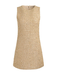 Feminine and intricately woven, Cade’s tweed is subtly embellished with sparkle- so you’ll light up every room you walk into. Designed in a classic shift fit with a gentle A-line silhouette, this dress is both ultra-flattering and endlessly versatile. It’s the perfect piece for those moments when you want to shine- effortlessly and unapologetically. DETAILS - Mini shift dress - Champagne sparkle tweed - Back zipper closure - 100% polyester - Dry clean only - Imported FIT - Model is 5'10" and wearing a size 0 - Length from the shoulder: 33" - Fits true to size, take your normal size