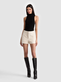 Tough meets tailored. Our Cady short is crafted from supple lamb leather in a warm-weather-friendly shade and cut with a clean waistband for a sleek, sculpted silhouette. The leg-baring fit makes them a natural choice for summer nights, but don’t be fooled-they layer just as well with oversized knits come fall. Just add boots, flats, or literally anything else. These are that good. DETAILS - White leather shorts - High rise - Clean waistband - Front hook and zipper closure - 100% lamb leather - Dry clean only - Imported FIT - Model is 5'10" and wearing a size 0 - Front rise: 11 1/4" - Inseam: 2 3/4" - Fits true to size, take your normal size