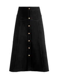 Our Calica suede midi skirt is both sophisticated and rustic. Its A-line silhouette is crafted from supple lambskin, tailored to perfection. It sits high on the waist and falls to an easy mid-calf length. Its feminine shape moves beautifully, swaying as you walk. Snap-front button closures finish the look. DETAILS - Suede midi skirt - Snap front closures - A-line fit - 100% lambskin suede - Dry clean only - Imported FIT - Model is 5'10" and wearing a size 0 - Skirt length: 29" - Fits true to size, take your normal size