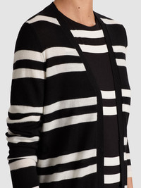 Meet your new wear-everywhere layer. The Callan maxi cardigan is knit in soft, 100% wool with elongated vertical stripes and a hook-and-eye front closure. The ankle-length silhouette makes it the perfect contrast to minis, bikinis, or denim cutoffs-just the thing to throw on post-beach or for crisp summer mornings. It’s prep, reimagined. DETAILS - Long striped cardigan - Striped - Front hook and eye closure - 100% wool - Dry clean only - Imported FIT - Model is 5'10" and wearing a size XS - Length from the shoulder: 45 1/2" - Fits true to size, take your normal size