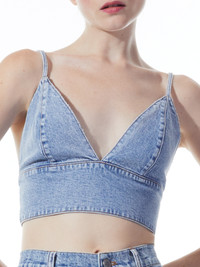 Denim is one of our favorite things and these cropped tops are our new favorite way to wear them. This includes a cropped fit and spaghetti straps-and when you wear it compliments are guaranteed. Just wait. PRODUCT DETAILS - Bra style top - Spaghetti straps - Cropped fit - Total length: 15 3/4” - 94%, cotton 4% T400, 2% lycra - Fits true to size, take your normal size - Aqua is wearing a size 2 and her measurements are 5’10”, 32” bust, 23” waist, 34” hips - Dry clean only - Imported