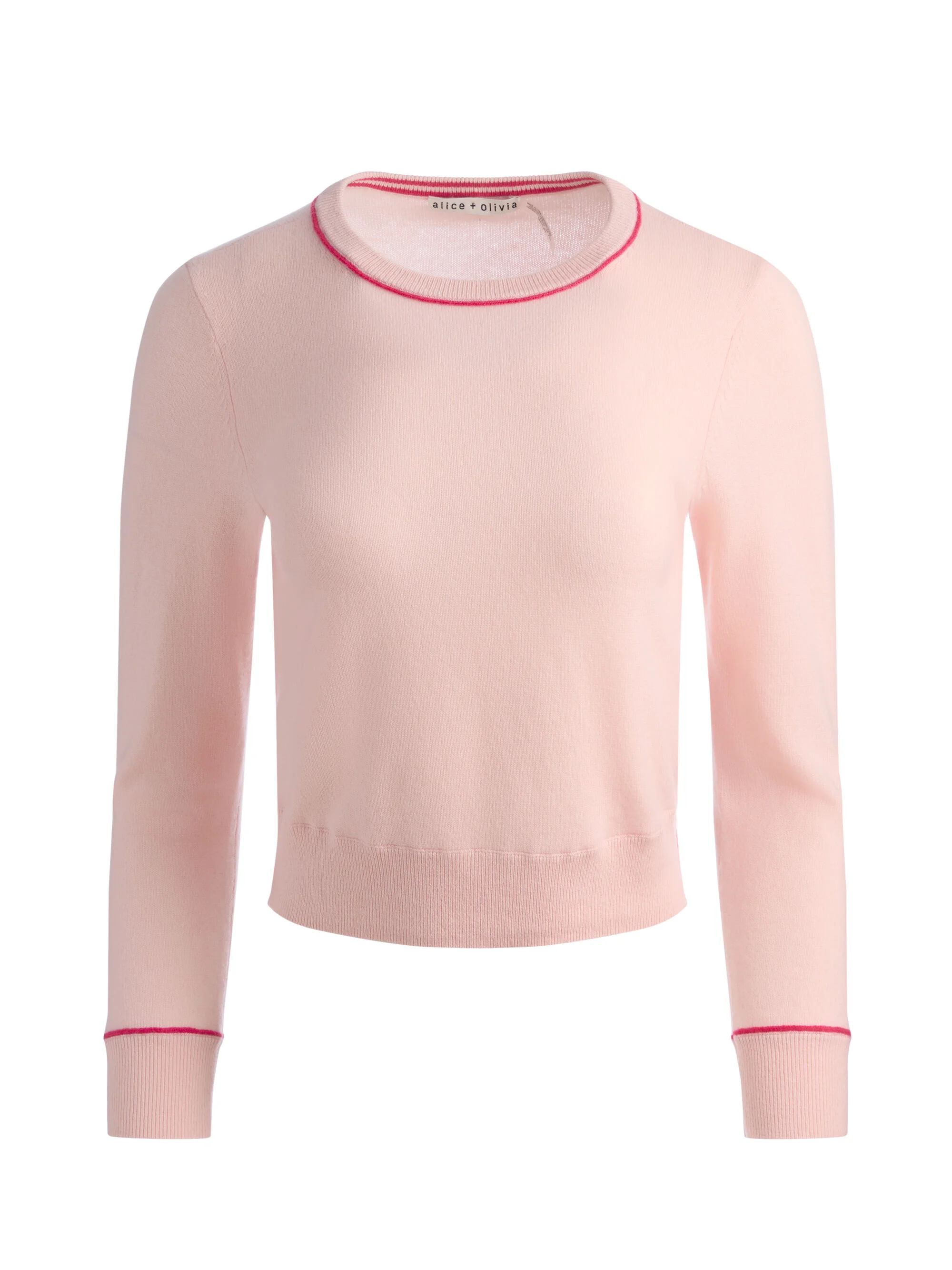 With a petite, shrunken fit, the Carolann pullover is that effortless sweater you can quickly throw on and look great in. This pink crew neck is crafted in 100% cashmere and includes enough stretch to make it extra-flattering. Tipping detailing adds a refined touch, while the classic silhouette maintains its versatility. DETAILS - Cashmere sweater - Shrunken fit - Cropped - Tipping detailing - 100% cashmere - Dry clean only - Imported FIT - Model is 5'10" and wearing a size Small - Length from the shoulder: 19 1/2" - Runs small, size up for a looser fit