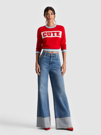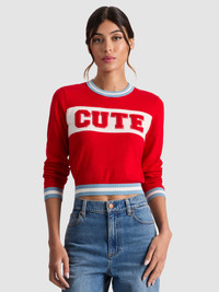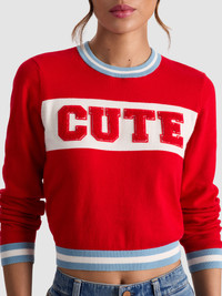 A playful nod to nostalgia. The Carolann pullover is quite literally a cute sweater - it's crafted in a soft cotton blend, finished with colorful embroidered patchwork that spells out “cute” in classic collegiate lettering. The shrunken fit works well layered over dresses or with a high-rise skort-perfect for adding personality to your prep rotation. DETAILS - Knit sweater - Shrunken fit - Embroidered patchwork - Crew neck - Striped tipping - 97% cotton, 3% elastane - Dry clean only - Imported FIT - Model is 5'10" and wearing a size XS - Length from the shoulder: 18 1/2" - Fits true to size, take your normal size