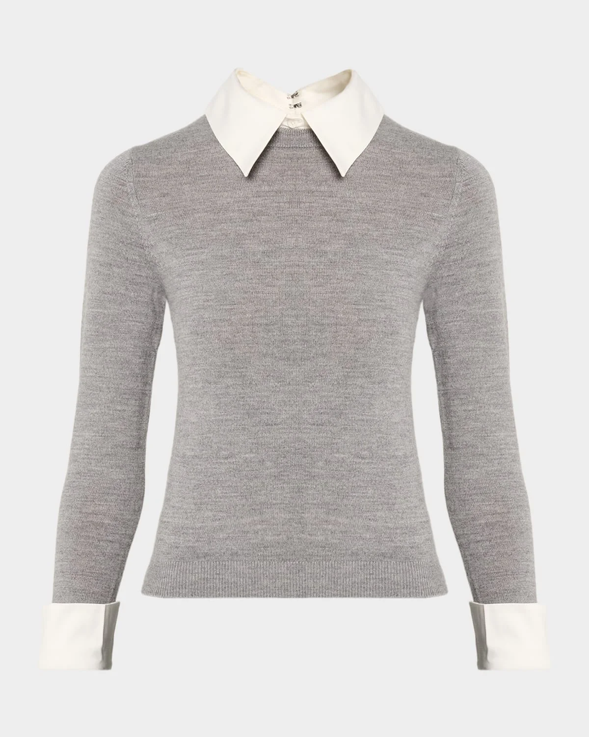 Accented with a contrasting collar and cuffs, the "Porla" top by Alice + Olivia features tiny, embroidered hearts at the cuffs for a subtle nod to "wearing your heart on your sleeve." Approx. 21"L from shoulder to hem Detachable woven collar Long sleeves; approx. 29.5"L Slim fit Hip length Ribbed hem Back zipper closure Wool/elastane Unlined Dry clean Imported