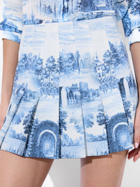 Our bestselling Carter Skirt is back, now printed in an exquisite Renaissance motif. It’s made from a recycled lightweight crepe and tailored in a girly A-line shape. Crisp pleats create beautiful movement as you walk. An effortless throw-on-and-go style, we love wearing this with everything from knitwear to crisp button-downs to t-shirts. DETAILS - Stitch pleats - Back zipper closure - Lined - Digital printed toile - Recycled lightweight crepe - 100% recycled polyester - Dry clean only - Imported FIT - Model is 5'10" and wearing a size 0 - Skirt length: 14 3/4" - Fits true to size, take your normal size