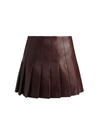 A closet staple with attitude. This Carter skirt is made from structured brown vegan leather with crisp pleats, a flattering A-line silhouette, and an easy back zip. It’s sleek, easy to style, and has that just-edgy-enough vibe that works from weekend errands to a big night out. DETAILS - Mini skirt - Vegan leather - A-line - Pleated - Back zipper closure - 100% polyurethane - Dry clean only - Imported FIT - Model is 5'10" and wearing a size 0 - Skirt length: 14 1/2" - Fits true to size, take your normal size