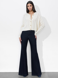 We love when a piece is both trendy and timeless. Cardigans are having a moment and this one is a forever-chic staple you’ll wear season after season, year after year. With a classic cableknit body, it has a cropped relaxed fit. Substantial without being weighty, it has year-round wearability. Layer it now under a puffer; drape it over your shoulders in the summer. DETAILS - Cableknit cardigan - Button front - Cropped - Boxy fit - 72% wool, 27% cashmere, 1% nylon - Dry clean only - Imported FIT - Model is wearing a size Small and her measurements are 5’10”, 32” bust, 23” waist, 34” hips - Length from the shoulder: 19" - Fits true to size, take your normal size