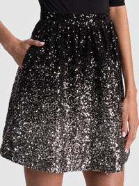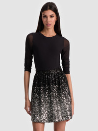 A forever favorite, now with a little sparkle. Our classic Chara is reimagined with sequins and shimmer, balancing a fitted mesh bodice and sheer sleeves against a flirty, embellished skirt. The cotton-linen base adds structure, while the fit-and-flare cut moves effortlessly with you. Equal parts playful and polished, it’s the ultimate party dress- just add heels and a bold lip. DETAILS - Mini dress - Sequined skirt - Lined mesh bodice - Sheer sleeves - Fit and flare - Back zipper closure - 54% linen, 43% cotton, 3% elastane - Dry clean only - Imported FIT - Model is 5'10" and wearing a size 0 - Length from the shoulder: 34" - Fits true to size, take your normal size