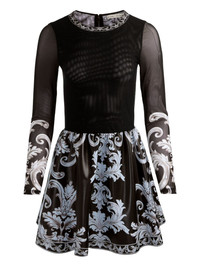 Chara mini dress Highlights - Black - Crew neck - Long sleeves - Floral print - Mini length - A-line skirt Imported Composition Polyester 100% Washing instructions Dry Clean Only