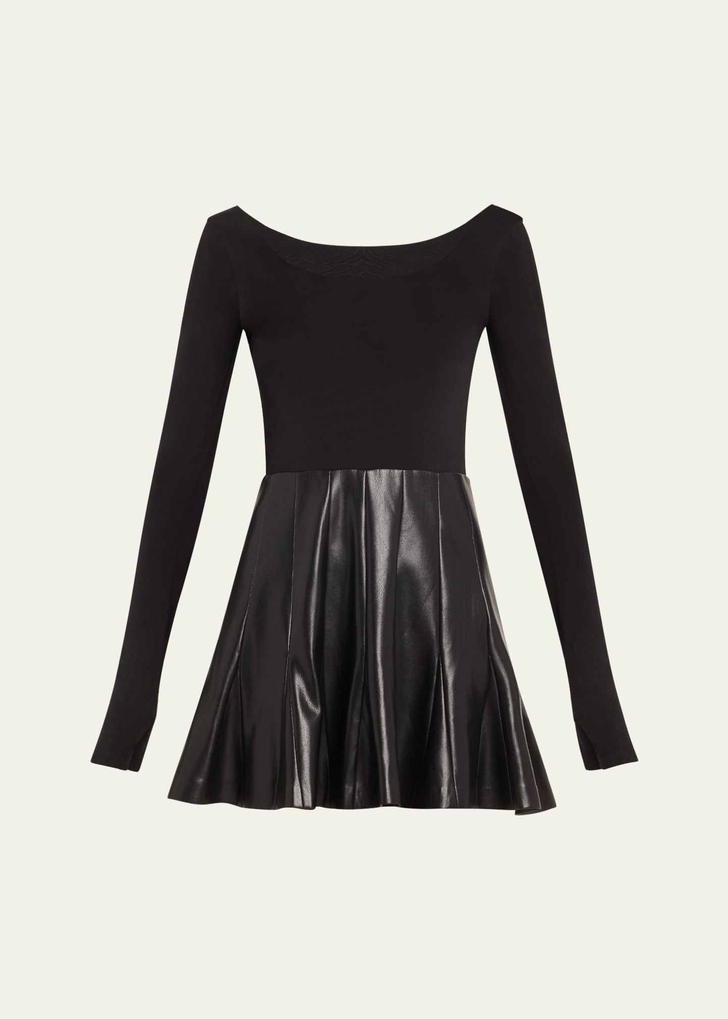 Chara Vegan Leather Long-Sleeve Pleated Mini Dress