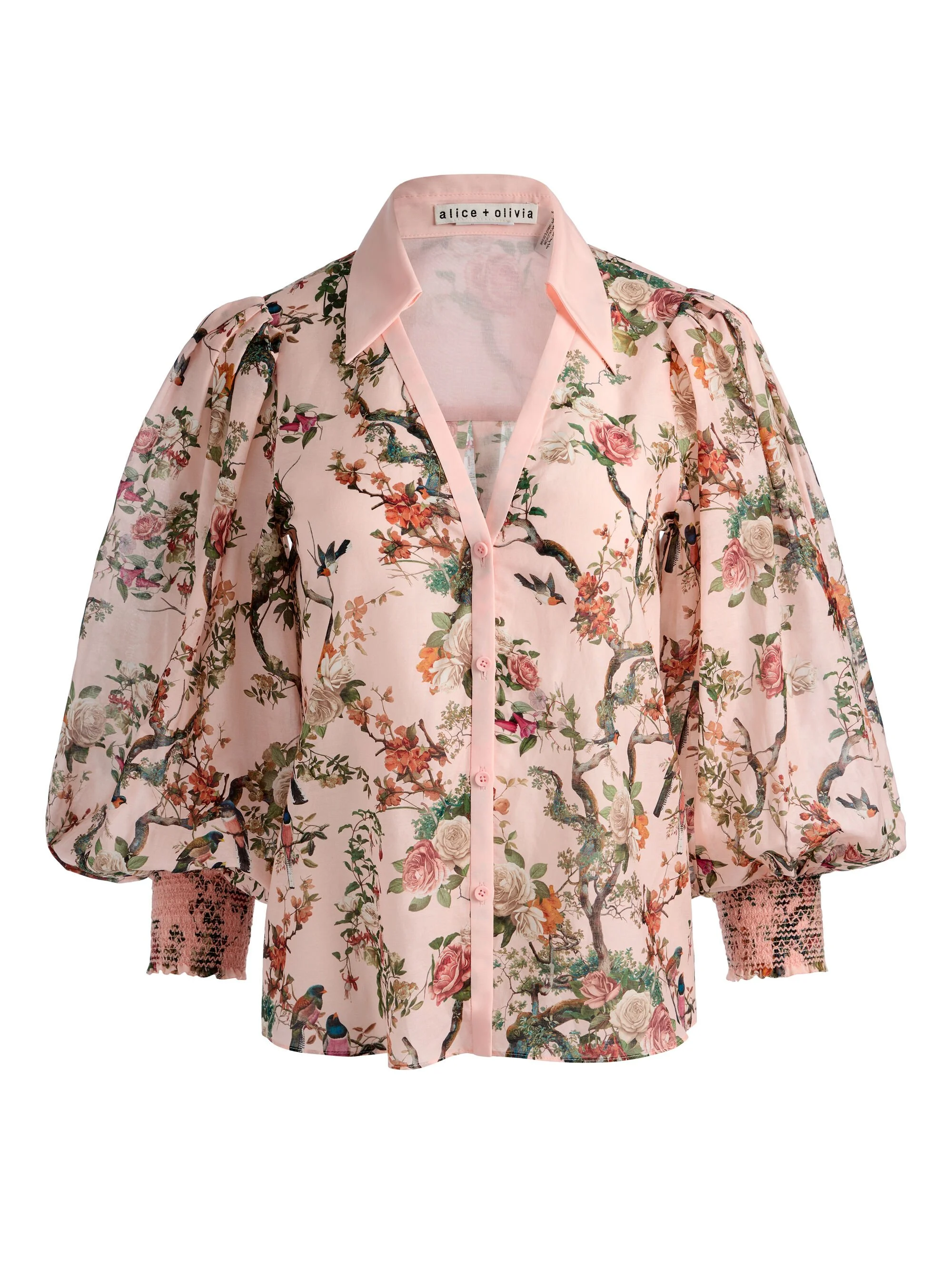Romantic print meets timeless tailoring. Lightweight cotton-silk voile is tailored in our Charis, giving it a light and airy feel. Blouson sleeves add subtle drama while the button-front design keeps the silhouette classic. The floral print brings color and personality, making it an easy piece to pair with denim, tailoring, or skirts for an elevated everyday look. DETAILS - Floral blouse - Printed cotton silk voile - Button front closures - Blouson sleeves - 70% cotton, 30% silk - Dry clean only - Imported FIT - Model is 5'10" and wearing a size XS - Length from the shoulder: 24" - Fits true to size, take your normal size