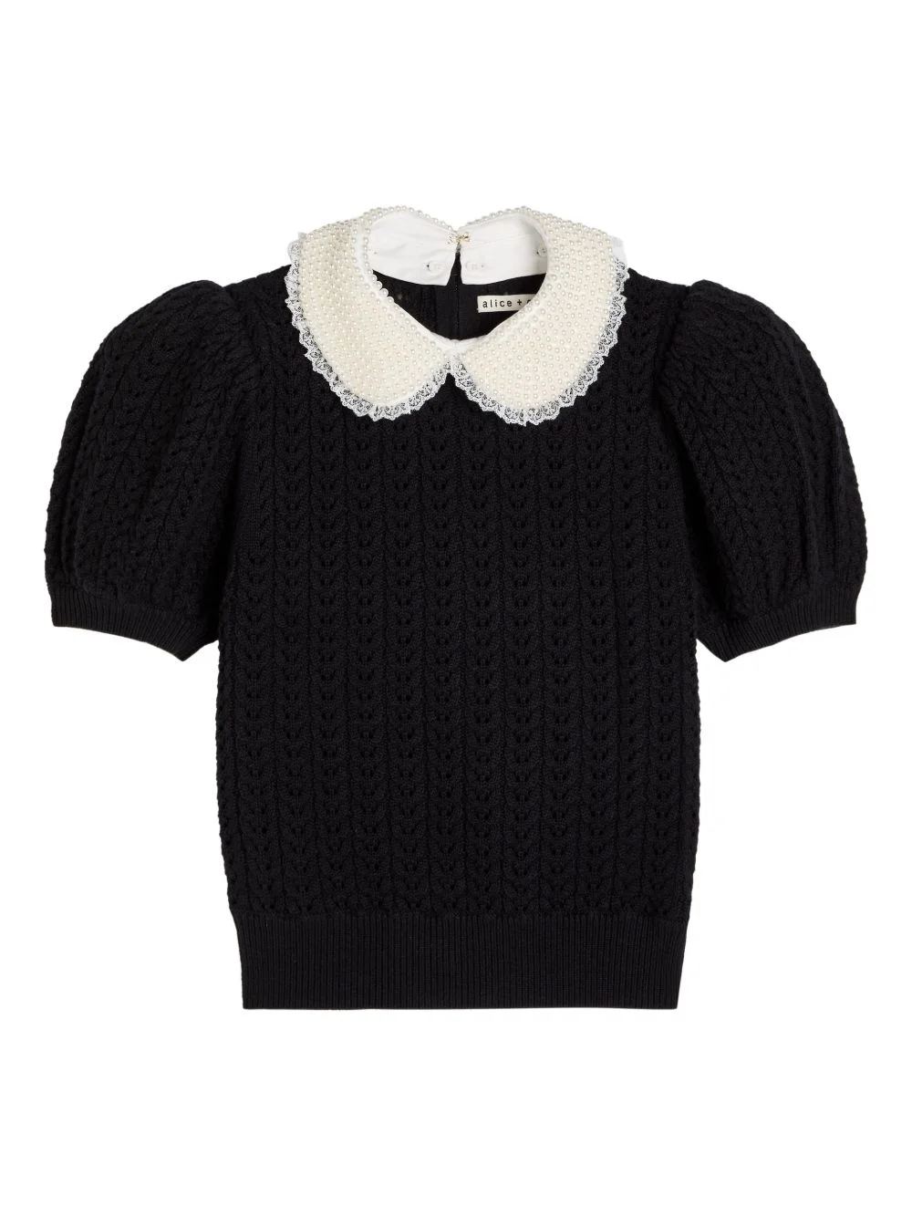 embellished puff-sleeve blouse Highlights - Black - Embellished collar - Puff sleeves - Short sleeves - Knit construction - Ribbed hem Imported Composition Cotton 50%, Wool 49%, Nylon 1% Washing instructions Dry Clean Only