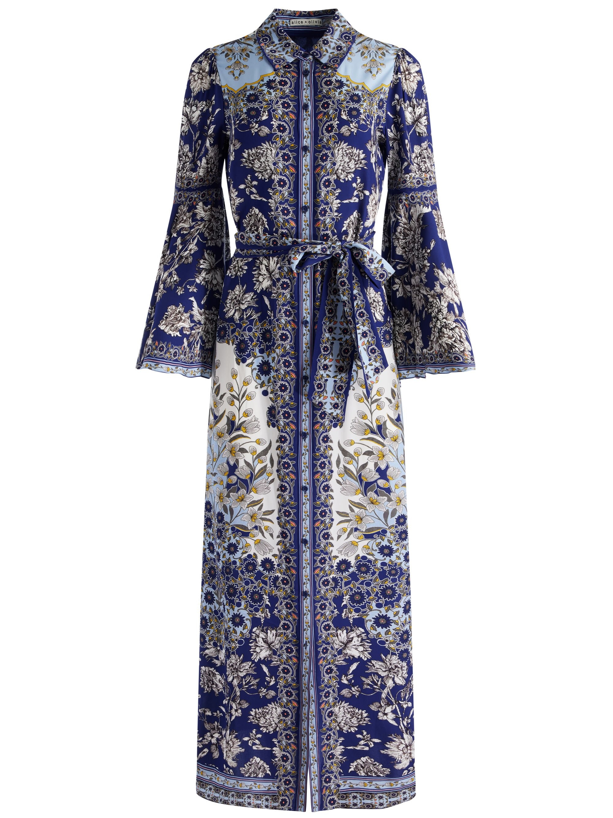 Breezy meets bold. The Chassidy dress is a maxi-length shirt dress printed in our forevermore floral and finished with exaggerated bell sleeves, an adjustable waist, and a sweeping hem. Made for long summer days and vacation dinners, this one is all about soft structure and dramatic ease. DETAILS - Maxi shirt dress - Printed double viscose - Bell sleeves - Adjustable tie waist - Button front - 100% viscose - Dry clean only - Imported FIT - Model is 5'10" and wearing a size XS - Length from the shoulder: 59" - Fits true to size, take your normal size