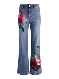 A wide leg denim hero. The Chic floral jeans have a high-rise, relaxed fit, and are finished with printed petals that add dimension without feeling heavy. They’re comfortable, sculpting, and endlessly easy to style. Pair them with everything from a simple white tee to an elevated blazer and you'll turn heads either way. DETAILS - Wide leg jean - Floral printed denim - High rise - Relaxed fit - Belt loops - Front button and zipper closure - 100% cotton - Turn inside out and machine wash on cold with like colors - Imported FIT - Model is 5'10" and wearing a size 24 - Front rise: 10 1/2" - Inseam: 34 1/2" - Fits true to size, take your normal size