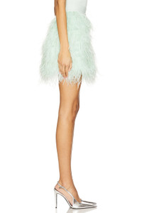 - Self: 100% nylon Lining: 95% recycled polyester 5% elastane Contrast Fabric: 100% dyed ostrich feathers - Made in China - Spot clean only - Fully lined - Back zip closure - Lightweight feather fabric - Item not sold as a set - Skirt measures approx 16" in length - Revolve Style No. ALI-WQ295 - Manufacturer Style No. CC412D15308