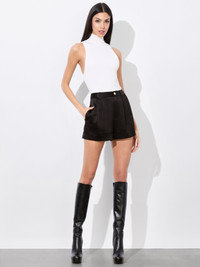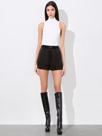 Made from silk-satin, our Conry Cuff Shorts have a lustrous sheen that we love. Their relaxed tailoring is what makes them such a coolly versatile wardrobe staple. They’re cut for an easy fit while crisp pleats and cuffed hems give them structure. Two front slash pockets, two back welt pockets, and a chic button finishes the look. Wear them with black tights and a sharp blazer. DETAILS - Relaxed fit - Cuffed - Pleated - Front slash pockets - Back welt pockets - Front button and zipper closure - Shiny satin - 75% triacetate, 25% polyester - Dry clean only - Imported FIT - Model is 5'10" and wearing a size 0 - Front rise: 11 1/2" - Inseam: 2 3/4" - Fits true to size, take your normal size