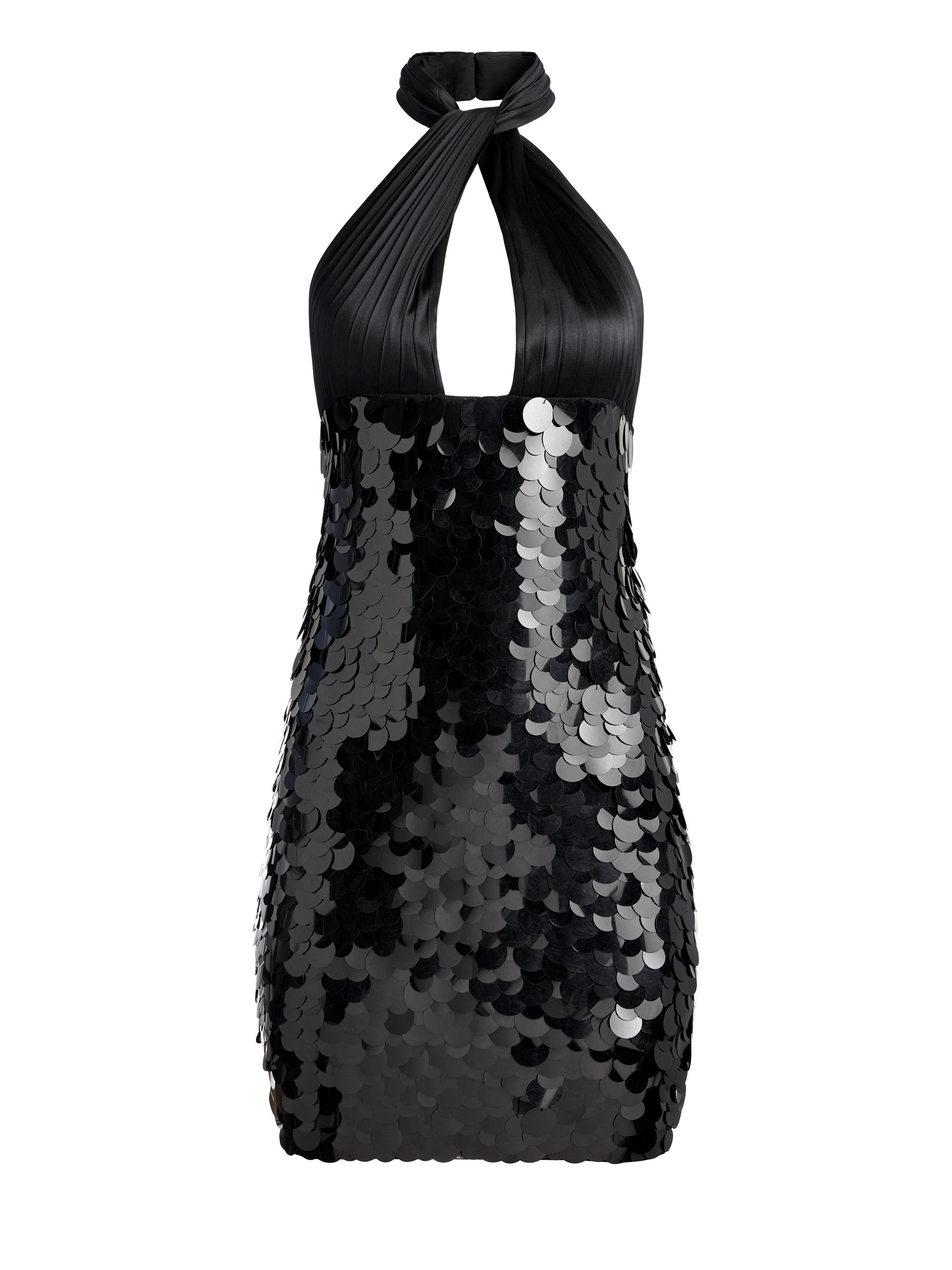 The Dedra dress is both sexy and effortless thanks to its perfect fit, sequin embellishments and that twist neckline that finishes as a halter. It's giving any basic LBD a run for its money. DETAILS - Mini dress - Large sequined embellishments - Twisted halter neck - Back zipper closure - 91% nylon, 9% elastane - Dry clean only - Imported FIT - Model is wearing a size 2 and her measurements are 5’10”, 32” bust, 23” waist, 34” hips - Total length: 35 1/2” - Fits true to size, take your normal size