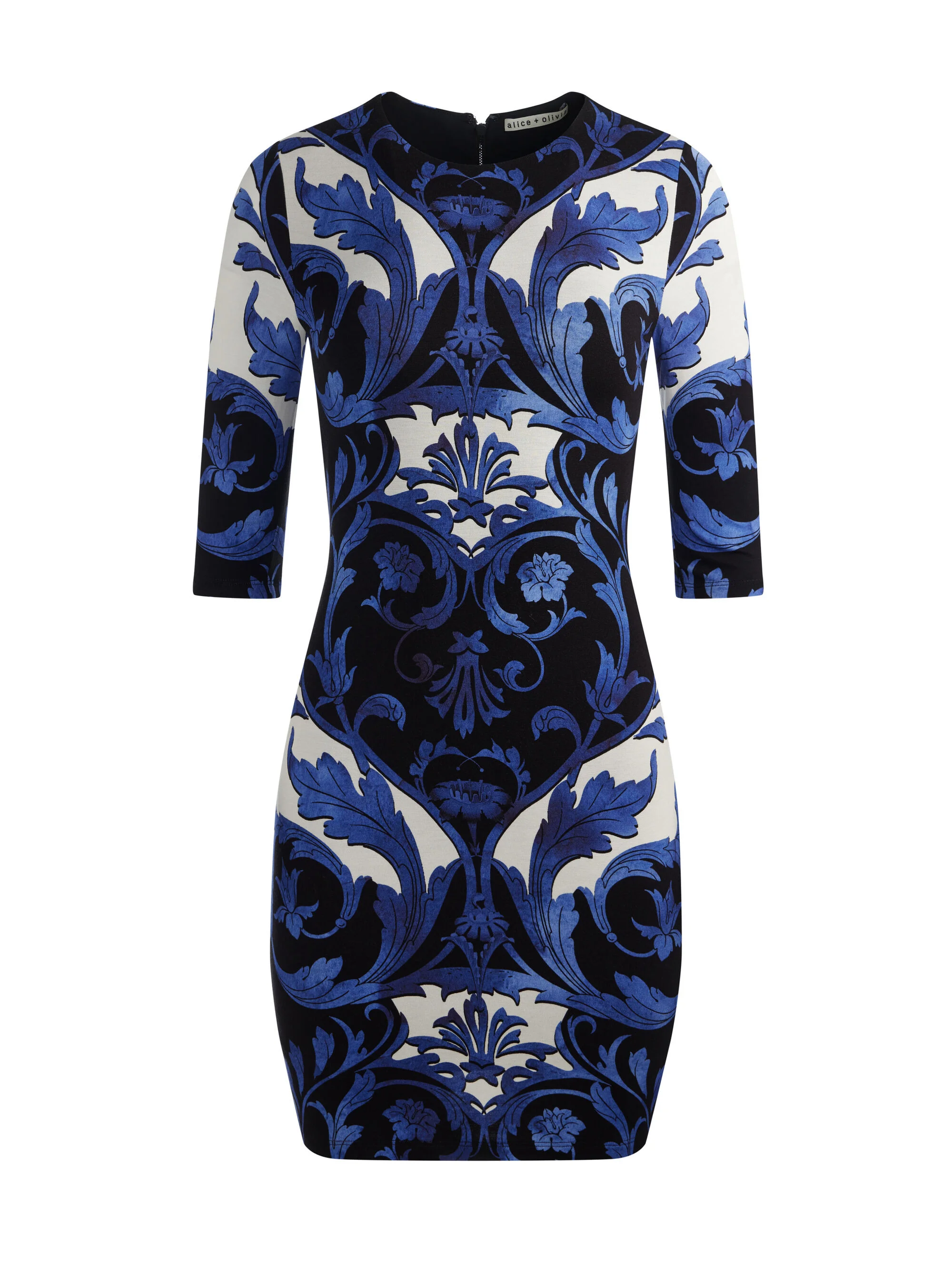 Meet the statement-maker your fall wardrobe needs. The Delora mini is crafted from ultra-soft stretch viscose and printed in our striking Regal Retreat motif-a rich, feminine take on paisley. Its bodycon silhouette hugs in all the right places, while a sleek back zip keeps the fit polished and secure. Equal parts elegant and edgy, it’s designed to turn heads from dinner to dance floor. DETAILS - Mini dress - Printed stretch viscose - Bodycon fit - 3/4 length sleeves - Back zipper closure - 97% viscose, 3% elastane - Dry clean only - Imported FIT - Model is 5'10" and wearing a size 0 - Length from the shoulder: 33" - Fits true to size, take your normal size