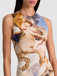 Sleek, sculpting, and infused with a touch of romance--Delora returns in a fresh new pattern while keeping the iconic, wow-factor silhouette you know and love. Crafted from stretch jersey that hugs every curve, this printed maxi dress stuns with an open back and a digitally engineered Renaissance-inspired print that speaks for itself. Just add statement earrings, slip on your heels, and you’re ready to turn heads. DETAILS - Maxi dress - Digitally engineered print on stretch jersey - Open back with zipper closure - Bodycon fit - 47% cupro, 47% viscose, 6% elastane - Dry clean only - Imported FIT - Model is 5'10" and wearing a size 0 - Length from the shoulder: 60" - Fits true to size, take your normal size