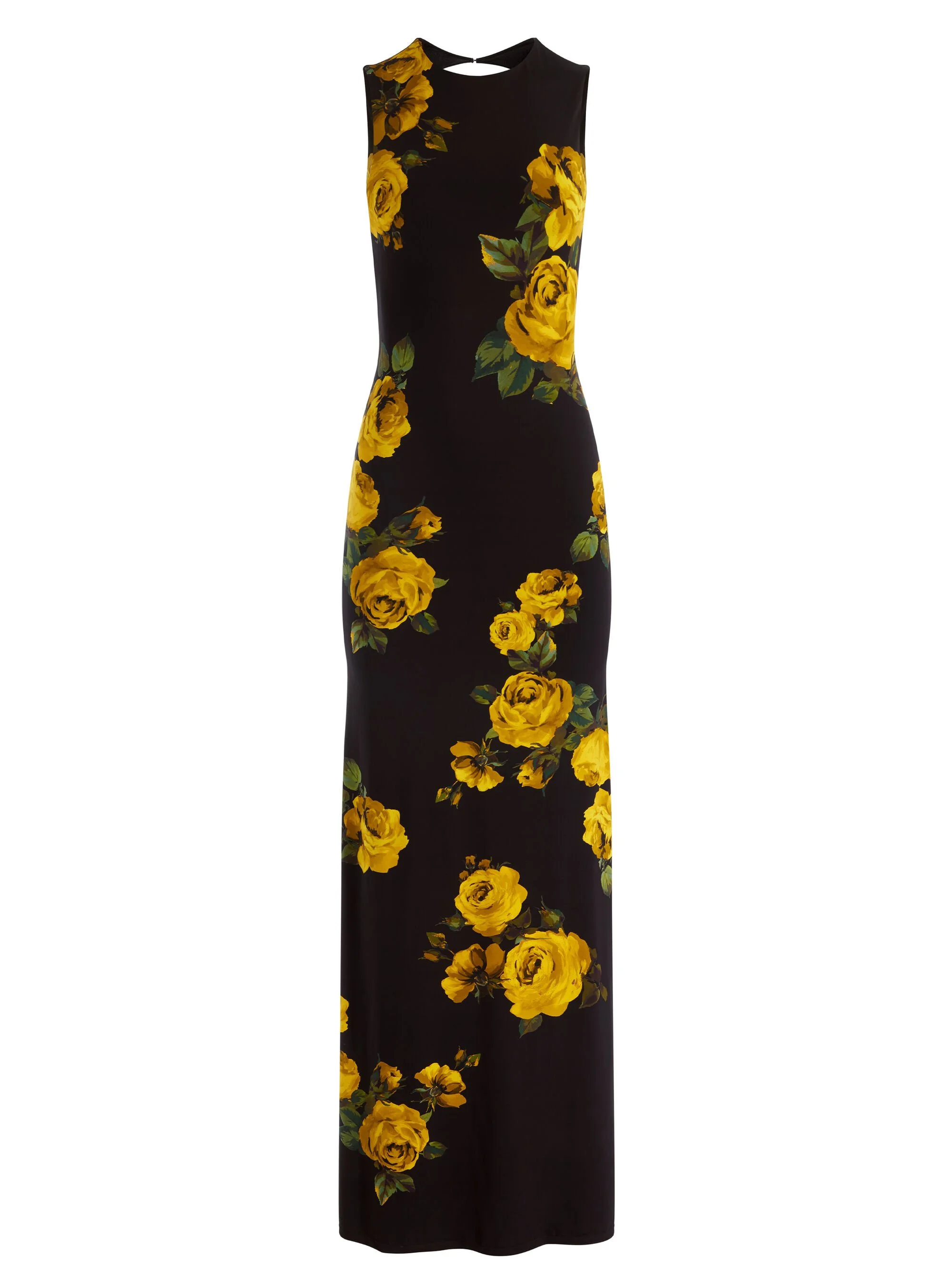 Sleek and sculpting with a twist of romance. Delora is a stretch jersey maxi that hugs the body, opens at the back, and features a digitally engineered floral print that does all the talking. She’s back in a fresh colorway but still delivers the same wow-factor silhouette you know and love. Add earrings, heels, and go. DETAILS - Maxi dress - Open back with zipper closure - Digitally engineered print on stretch jersey - Bodycon fit - Digitally engineered print - 90% viscose, 10% elastane - Dry clean only - Imported FIT - Model is 5'10" and wearing a size 0 - Length from the shoulder: 60" - Fits true to size, take your normal size