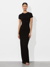 Two looks in one sleek silhouette. The Delora dress is fully reversible, with a dramatic front slit that can be flipped to the back for a more understated vibe. Cut in our soft stretch wool jersey, it hugs the body and features subtle cap sleeves for just a touch of coverage. Minimal, modern, and totally versatile-it’s your new closet hero. DETAILS - Maxi dress - Reversible; can be worn with slit in front or back - Wool viscose stretch jersey - Cap sleeves - Bodycon fit - 67% viscose, 28% wool, 5% elastane - Dry clean only - Imported FIT - Model is 5'10" and wearing a size 0 - Length from the shoulder: 59 1/2" - Fits true to size, take your normal size