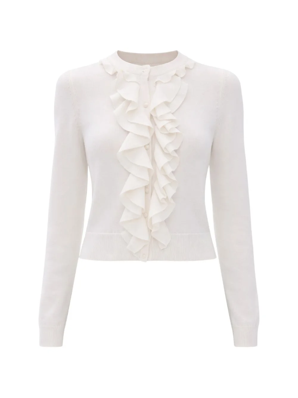Dollie cardigan Highlights - White - Front button fastening - Ruffle trim Imported Composition Body: Wool 98%, Nylon 2%