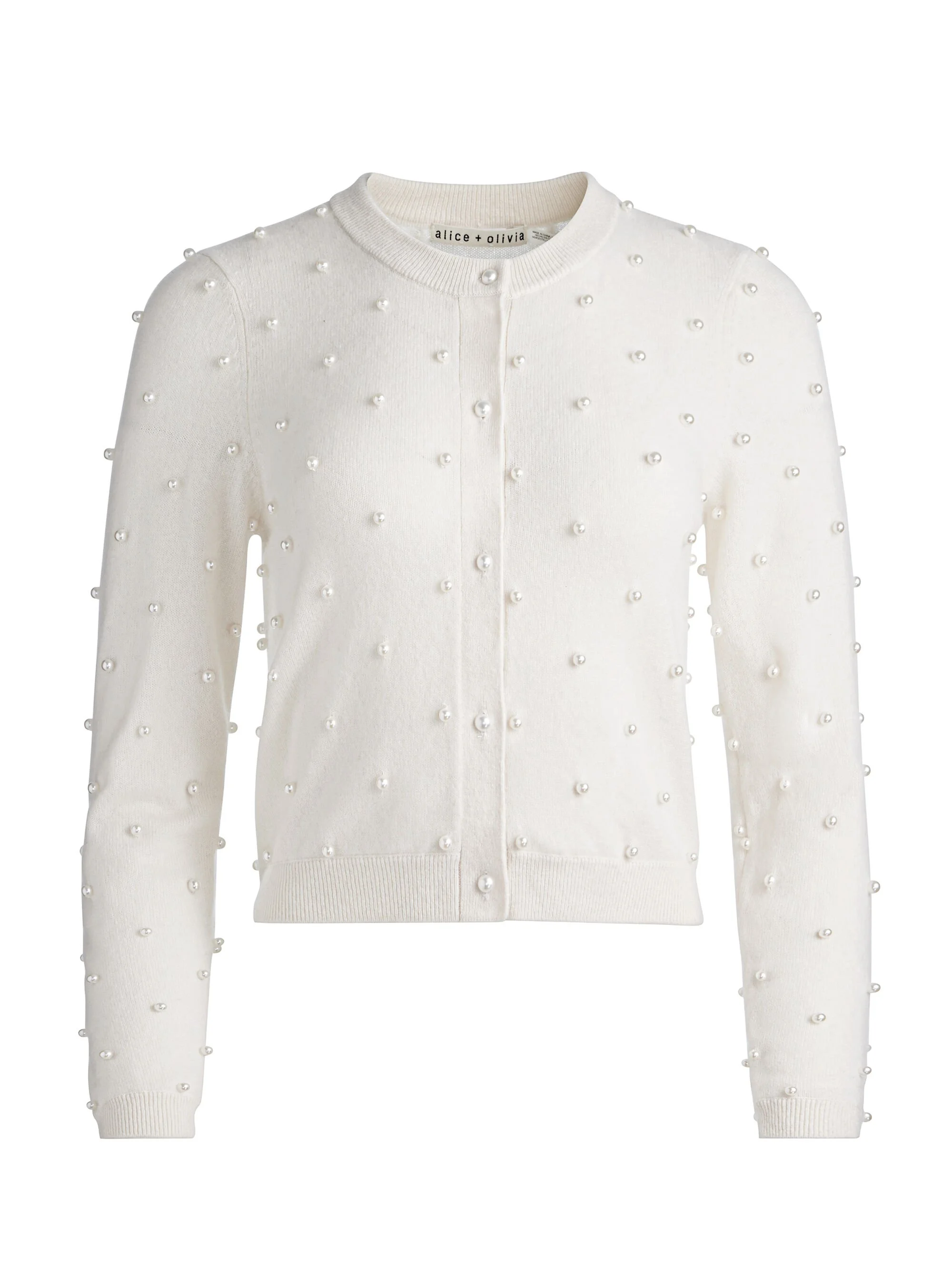 Our best-selling Dollie is back this season with some added fun. Spun from ultra-luxe 98% cashmere and cut in a cropped, shrunken fit, this embellished cardigan is as perfect thrown over the shoulders as it is buttoned up for an effortlessly polished look. A true cult favorite, it’s the kind of piece you’ll want in every color- and then some. DETAILS - Cashmere cardigan - Embellished - Cropped - Shrunken fit - Button front closures - 98% cashmere, 2% nylon - Dry clean only - Imported FIT - Model is 5'10" and wearing a size Small - Length from the shoulder: 18 1/2" - Meant for a shrunken fit, size up for a less fitted look