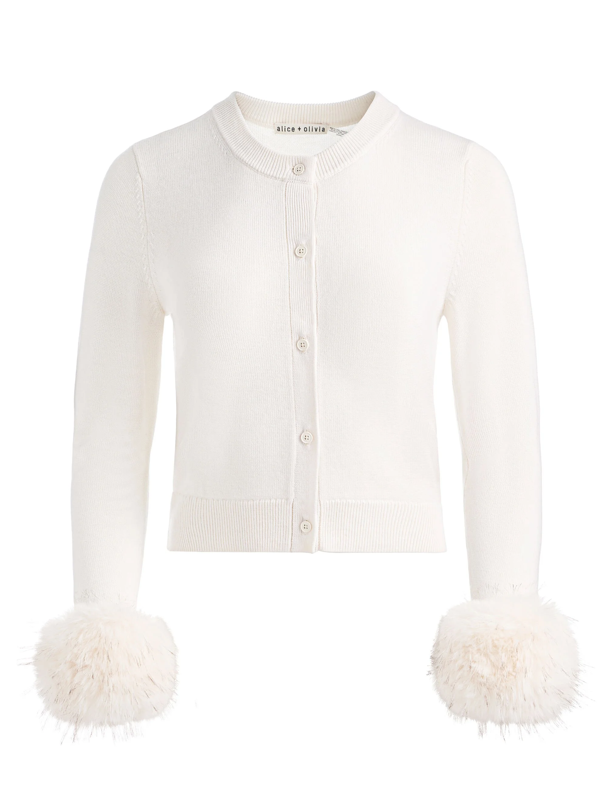 Our best-selling Dollie is back--now with a playful twist. This season, it features removable faux fur cuffs so you can switch up your look: keep it classic without them, or button them on when you're in the mood for something a little more fun. Spun from ultra-luxe 100% merino wool and cut in a cropped, shrunken fit, this adorable cardigan is just as perfect draped over the shoulders as it is buttoned up for an effortlessly polished vibe. A true cult favorite, it's the kind of piece you'll want in every coloruand then some. DETAILS - Wool cardigan - Detachable faux fur cuffs - Cropped - Fitted - 100% merino wool - Dry clean only - Imported FIT - Model is 5'10" and wearing a size Small - Length from the shoulder: 18 1/2" - Meant for a shrunken fit, size up for a less fitted look