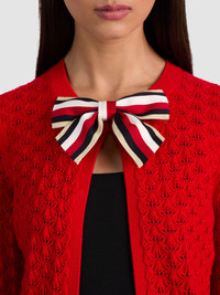 The cult-favorite cardigan gets a romantic new twist. This season’s Dollie is reimagined in ultra-soft merino wool with delicate pointelle stitching and a slightly shrunken, cropped silhouette. A removable oversized bow at the neck and open front adds a touch of whimsy-and endless styling options. Sweet on its own or layered over your favorite dress, it’s a closet staple with personality. DETAILS - Wool cardigan - Pointelle stitch - Cropped - Detachable bow - Front hook closure - 99% merino wool, 1% nylon - Dry clean only - Imported FIT - Model is 5'10" and wearing a size XS - Length from the shoulder: 19" - Fits true to size, take your normal size