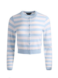 Meet your new favorite cardigan. Our beloved Dollie, spun from 100% cashmere, returns in cute stripes with an embroidered reminder stitched discreetly inside the neckline: “you are great.” It’s our wink to the woman wearing it--because style should uplift you. The cropped fit makes it perfect for pairing with high-rise denim or feminine skirts, striking that line between preppy and playful. It’s the kind of piece that feels personal, polished, and a little bit magical every time you put it on. DETAILS - Cashmere striped cardigan - Embroidered text on inner back neck trim - Cropped - Shrunken fit - 100% cashmere - Dry clean only - Imported FIT - Model is 5'10" and wearing a size small - Length from the shoulder: 18 1/2" - Runs small, size up for a looser fit