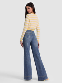 Meet your new favorite cardigan. Our beloved Dollie, spun from 100% cashmere, returns in cute stripes with an embroidered reminder stitched discreetly inside the neckline: “you are great.” It’s our wink to the woman wearing it--because style should uplift you. The cropped fit makes it perfect for pairing with high-rise denim or feminine skirts, striking that line between preppy and playful. It’s the kind of piece that feels personal, polished, and a little bit magical every time you put it on. DETAILS - Cashmere striped cardigan - Embroidered text on inner back neck trim - Cropped - Shrunken fit - 100% cashmere - Dry clean only - Imported FIT - Model is 5'10" and wearing a size small - Length from the shoulder: 18 1/2" - Runs small, size up for a looser fit
