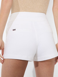 ALICE + OLIVIA JEANS is a capsule collection from Alice + Olivia that was born and raised in Los Angeles and made to dress your inner rockstar. This cool high rise denim minishort has serious throwback vibes and will do some pretty incredible things to your legs. Bonus: Those exposed side button closures. DETAILS - High rise - Exposed side button closure - Large front pockets - 98% cotton 2% elastane (Stretch) - Inseam: 2 3/4” - Front rise: 11 5/8” - Back rise: 15 1/4” - Fits true to size, take your normal size - Megan is wearing a size 26 and her measurements are 5'10", 32" bust, 23" waist, 34" hips - Dry clean only - Imported