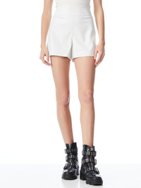 Vintage-inspired shorts with a flattering high waist. We made them in a vegan leather, you can thank us later. DETAILS - High waist short - Thick waistband - Back pockets - Exposed zipper back closure - 100% polyester (vegan leather) - Front rise: 12 1/4” - Back rise: 16 1/4” - Inseam: 3” - Runs small, we recommend sizing down one size - Aqua is wearing a size 2 and her measurements are 5’10”, 32” bust, 23” waist, 34” hips - Dry clean only - Imported