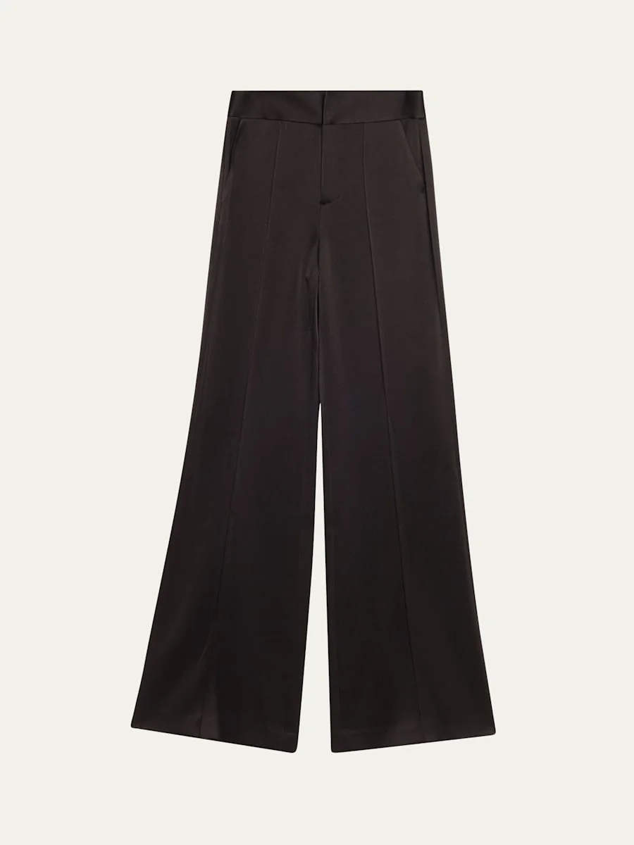 Alice + Olivia "Dylan" lustrous satin pants finished with pintuck seaming High rise Slanted side and back welt pockets Full length Wide legs Hidden hook/zip fly Triacetate/polyester Imported Model is 5'10"/177cm. Online Inquiries: BGS21_T621U| Store Inquiries: #4885476