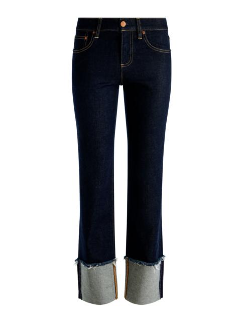 A classic with a kick. Our bestselling Dylan jean returns with its signature high rise and wide leg-now finished with a sleek red side stripe and pintuck detail down the front. Made from stretch cotton denim in Albertine Blue, it’s equal parts statement and staple. Think: cool girl prep, perfected. DETAILS - Wide leg jean - High rise - Red side stripe detail - Front pintuck - Hidden front hook and zipper closure - 94% cotton, 5% elastomultiester, 1% elastane - Dry clean only - Imported FIT - Model is 5'10" and wearing a size 24 - Front rise: 10 1/4" - Inseam: 34 1/4" - Fits true to size, take your normal size