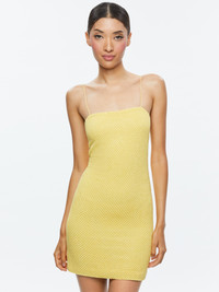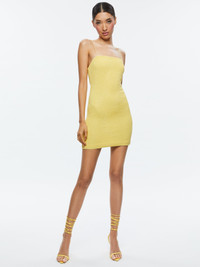 An easy minidress in a fun color = wardrobe must-have. Here's our take: a square neckline, mini length, spaghetti straps and easy back zip closure. And it wouldn't be an A+O piece if we didn't add some embellishments too. DETAILS - Mini dress - Bodycon fit - Straight neck - Embellished - Sleeveless - Back zipper closure - 91% nylon, 9% elastane - Dry clean only - Imported FIT - Model is wearing a size 2 and her measurements are 5’10”, 32” bust, 23” waist, 34” hips - Length from the shoulder: 33” - Fits true to size, take your normal size