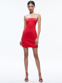 An easy minidress in a bright color = wardrobe must-have. Here's our take: A sexy back cutout, square neckline, mini length, spaghetti straps and easy back zip closure. It also hugs you exactly where you want to be hugged. DETAILS - Mini Dress - Square neck - Cutout back - Spaghetti straps - Back zipper closure - 94% nylon, 6% elastane - Dry clean only - Imported FIT - Model is wearing a size 2 and her measurements are 5’10”, 30” bust, 23” waist, 34” hips - Total length: 26” - Fits true to size, take your normal size
