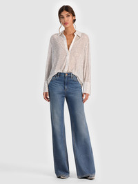 The throw-on-and-go shirt of your dreams just got an upgrade. Our Finely black button-down is back-- this time with a touch of shine. Embellished with heat-set crystals that catch the light at every turn, it’s intentionally oversized for that borrowed-from-the-boys ease. Designed with exaggerated cuffs, a longline hem, and a relaxed drape, it looks just as good tucked in as it does left loose. Wear it solo, paired with denim, or layered open over a tank-- versatile, effortless, and undeniably fun. DETAILS - Embellished button down - Hematite heat-set crystals on georgette - Oversized fit - Collared - Hidden placket - 100% polyester - Dry clean only - Imported FIT - Model is 5'10" and wearing a size XS - Length from the shoulder: 30 1/2" - Runs large, size down for a slimmer fit