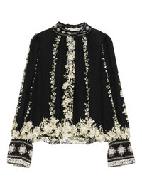 floral shirt Highlights - Black - Floral print - High neck - Button fastening - Long sleeves - Embroidered cuffs Imported Composition Outer: Viscose 100%, Polyester 100% Lining: Recycled Polyester 95%, Elastane 5% SIZE & FIT Model measurements Height 5 ft 10 in(1.78 m) Bust/Chest 31.49 in(80 cm) Hips 37 in(94 cm) Waist 23.62 in(60 cm) Washing instructions Specialist Cleaning