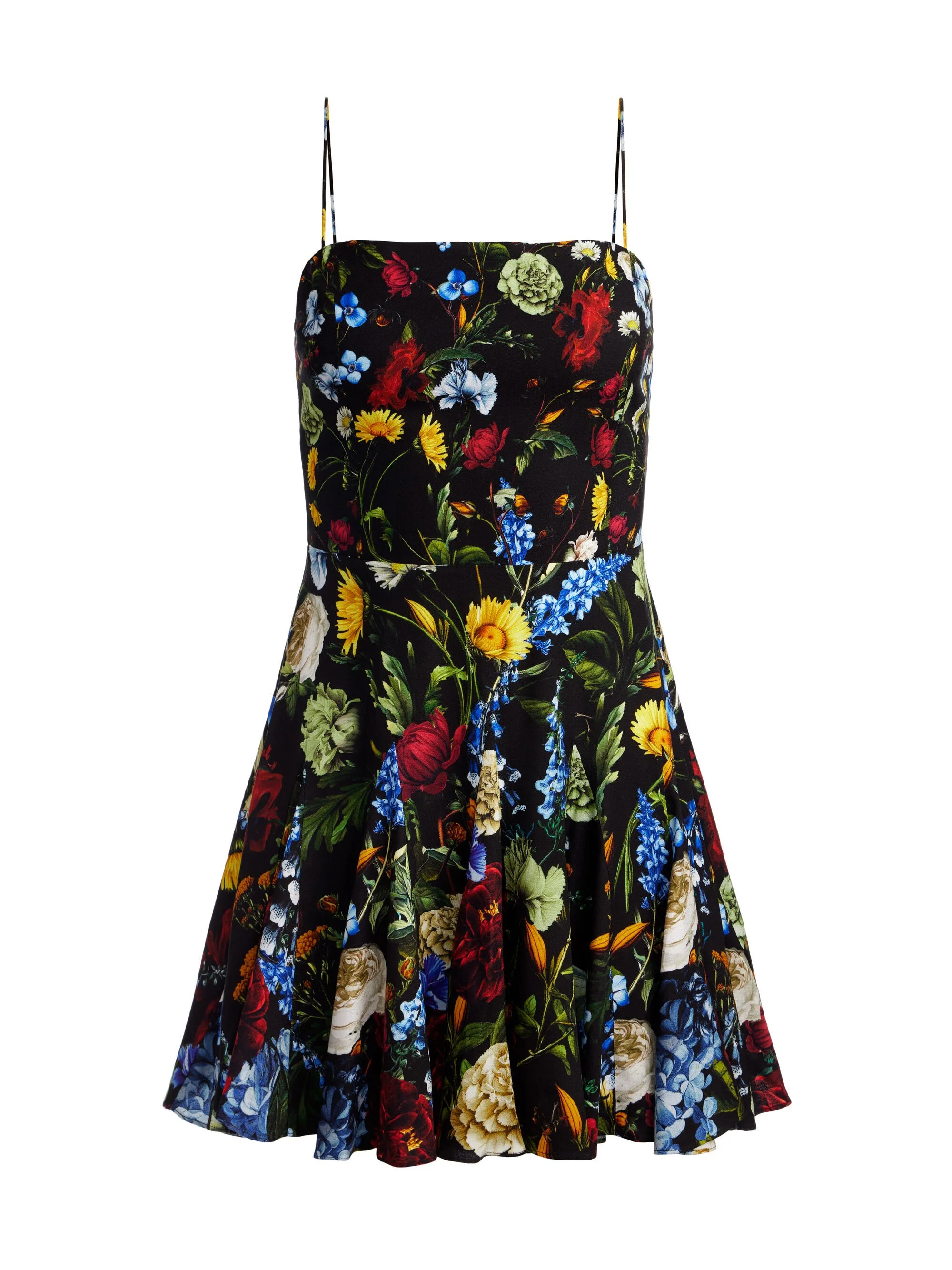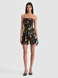 The Ginny dress is your little black dress-leveled way up. With delicate spaghetti straps, a structured bodice, and a flouncy godet skirt, it’s ultra-flirty and feminine. The fitted top contrasts with the soft flare of the hem for a silhouette that’s equal parts playful and flattering. Just add lip gloss and go. DETAILS - Mini dress - Printed crepe viscose - A-line fit - Spaghetti strap - Pleated godets - Smocked back with zipper closure - 100% viscose - Dry clean only - Imported FIT - Model is 5'10" and wearing a size 0 - Length from the shoulder: 32 1/2" - Fits true to size, take your normal size