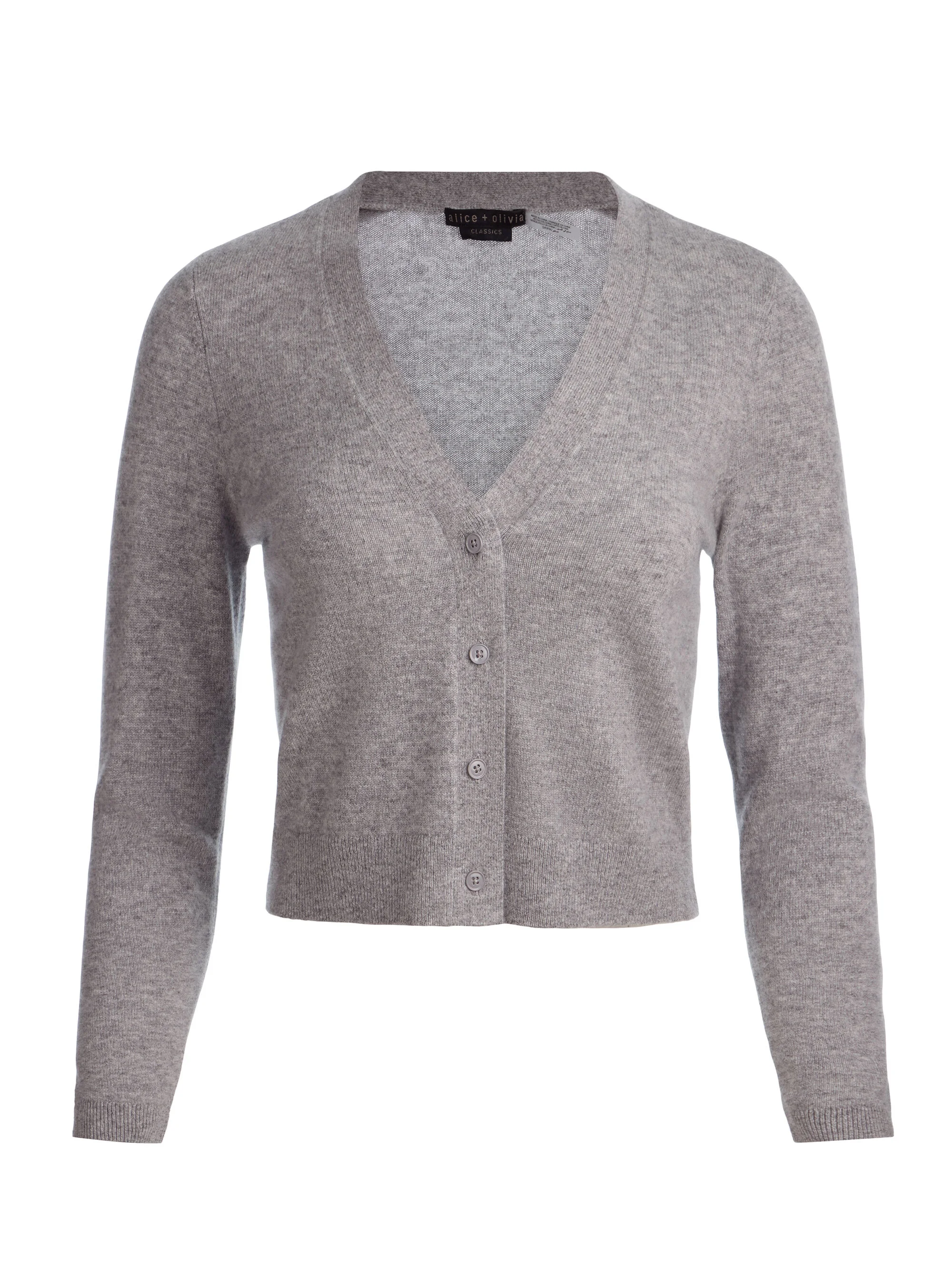 The kind of grey cardigan that elevates everything else in your closet. Grace is spun from 98% luxury cashmere and cut in a cropped, fitted silhouette that layers like a dream. Delicate button-front closures and a subtly heathered grey hue keep it timeless and wearable, whether you’re lounging at home or layering up for the office. For a full look, pair it with the matching Maude bralette underneath-cozy, polished, and completely pulled together. DETAILS - Cashmere cardigan - Cropped - Button front closures - 98% cashmere, 2% nylon - Dry clean only - Imported FIT - Model is 5'10" and wearing a size XS - Length from the shoulder: 18 1/2" - Fits true to size, take your normal size