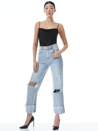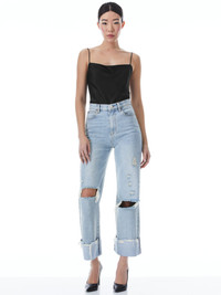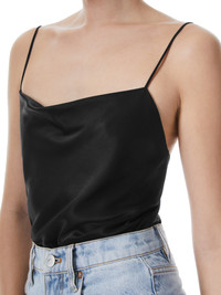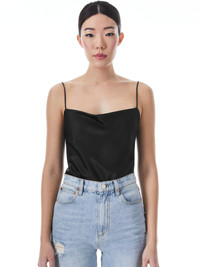 We took our best-selling minimalist camisole and turned it into the perfect bodysuit. Same cute cowl neck and drapey fabric, minus the worry about tucking it in. DETAILS - Spaghetti strap - Cowl neck - Slip style - Thong back - 75% triacetate, 25% polyester - Length: 19” from neck to hip seam - Fits true to size, take your normal size - Meghan is wearing a size Small and her measurements are 5’10”, 32” bust, 23” waist, 34” hips - Dry clean only - Imported