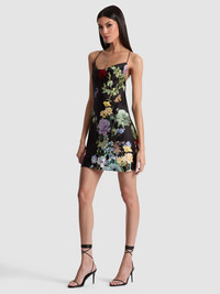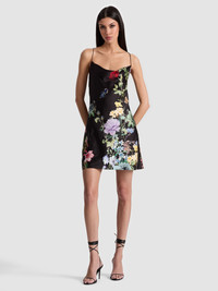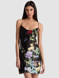 Talk about '90s minimalism, we love the way this simple slip dress channels one of our favorite decades with its spaghetti straps and cowl back. So perfect with or without accessories. DETAILS - Mini slip dress - Printed stretch viscose charmeuse - Cowl back - Criss-cross straps - Side zipper closure - 97% viscose, 3% elastane - Dry clean only - Imported FIT - Model is 5'10" and wearing a size 0 - Length from the shoulder: 33" - Fits true to size, take your normal size