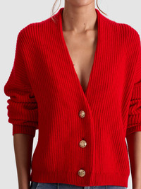 The cardigan that does it all. Spun from a merino wool blend, the Holden is cropped and cozy with a foldback, shawl-like neckline. Finished with gold buttons for a hint of shine, it’s a polished layer that works just as well over a dress as it does with your favorite denim. From chilly mornings to desk-to-dinner dressing, this one’s in heavy rotation. DETAILS - Wool cardigan - Cropped - V-neck - Gold button closures - 79% merino wool, 12% nylon, 9% cotton - Dry clean only - Imported FIT - Model is 5'10" and wearing a size XS - Length from the shoulder: 22" - Fits true to size, take your normal size
